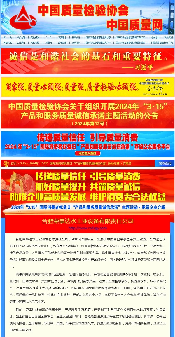今后,榮事達水工業公司將繼續以優質的產品和服務,為消費者帶來更多的驚喜和滿足,共創美好未來。公司將秉持“每天都是3·15”的理念,不斷實現消費升級,激發消費活力。我們相信,只有真正站在消費者的角度,為他們創造更大的價值,才能贏得市場的認可和信賴。