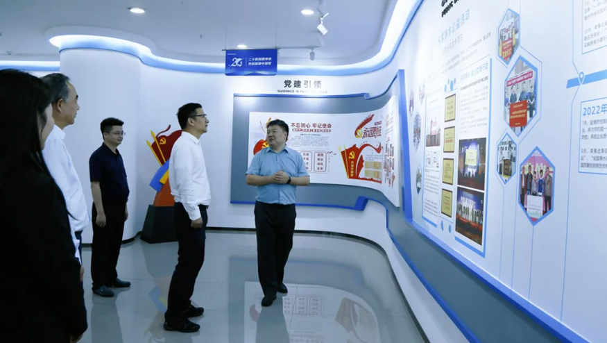 在智慧水世界展廳,董事長雷鳴向領(lǐng)導(dǎo)一行詳細(xì)介紹集團(tuán)的發(fā)展歷程、公益貢獻(xiàn)及黨建引領(lǐng)下的企業(yè)文化等。