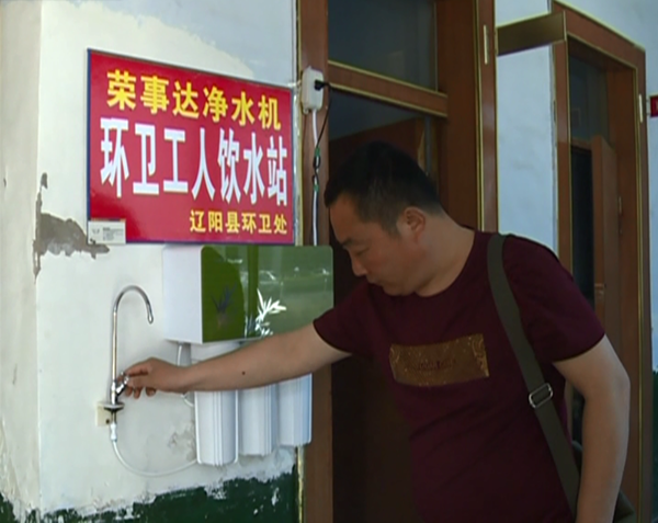 進入夏季后,天氣越來越熱,對于在馬路上工作的環衛工人來說飲水成了一大難題。大多環衛工人每天早上從家帶一兩瓶水,喝完后就接自來水管的生水喝,有時進路邊的店鋪要水還會被拒絕。為了解決環衛工人飲水這一難題,五月開始,遼寧省遼陽地區的榮事達凈水機代理商許廣彥在遼陽縣為環衛工人捐贈十臺凈水機,并在縣內主要街道設立了榮事達環衛工人飲水站,供環衛工人免費飲水。